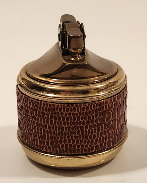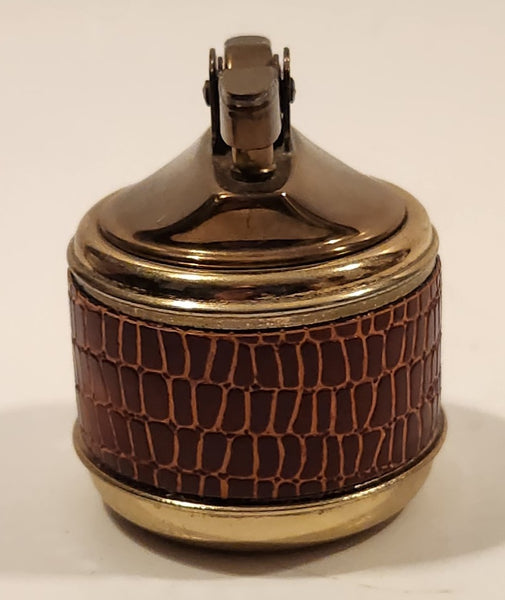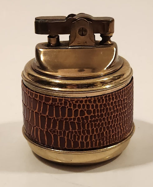 Vintage Brown Faux Alligator Skin Pattern Leather Wrapped Table Lighter Made in Japan