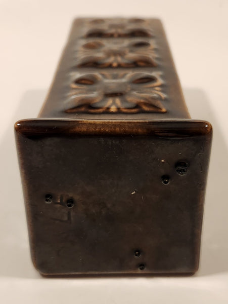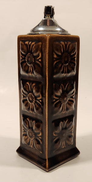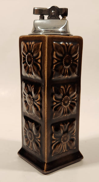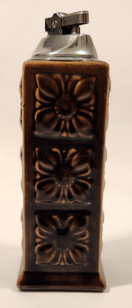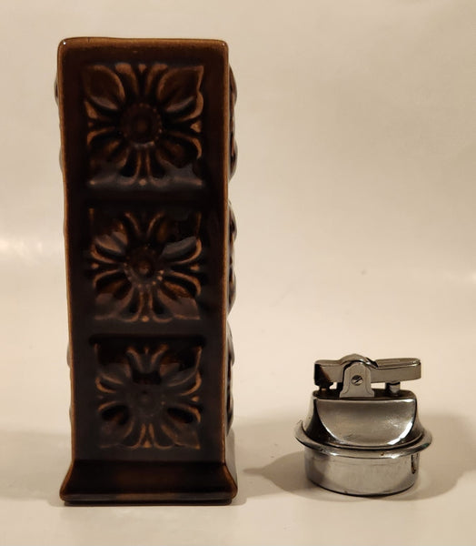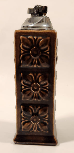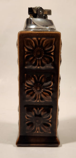 Vintage Embossed Flower Pattern Brown Ceramic Table Top Lighter Signed Dale