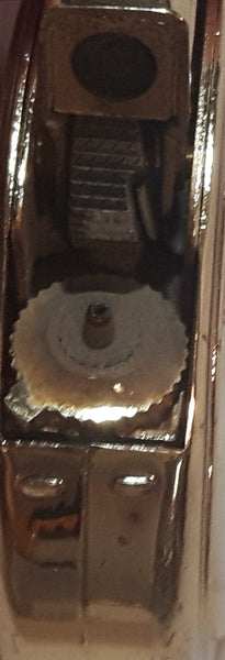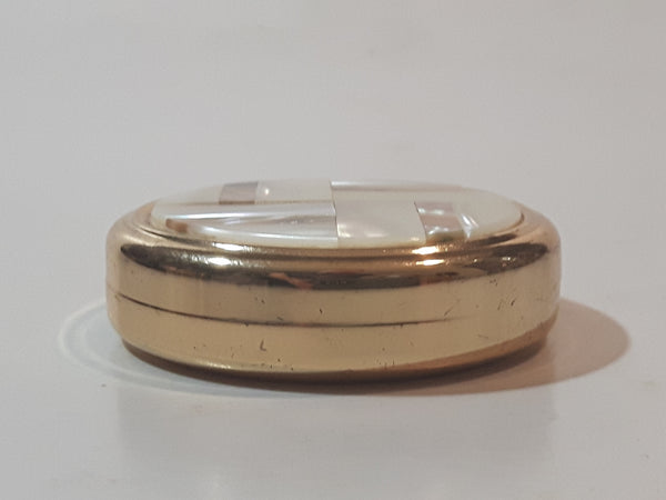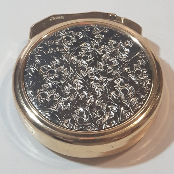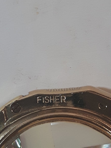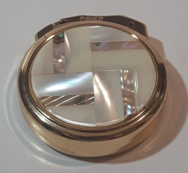 Vintage Fisher Mother of Pearl Abalone Shell Engraved Gold Tone Round Shaped Lighter Made in Japan