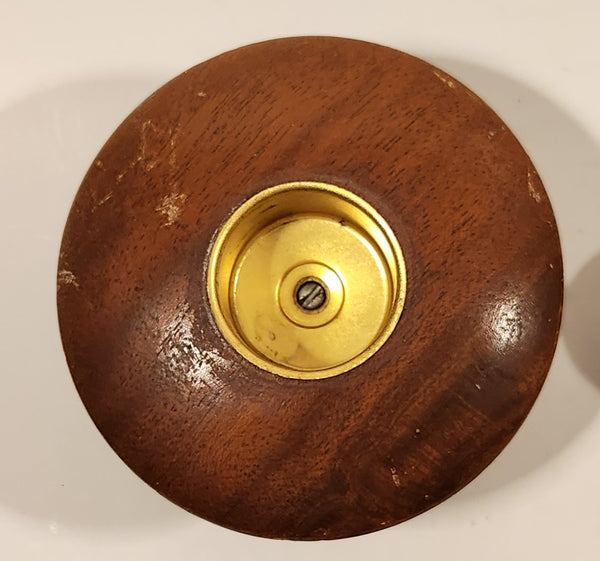 Vintage Ronson Round Teak Wood Table Lighter with Ring Brass Feet