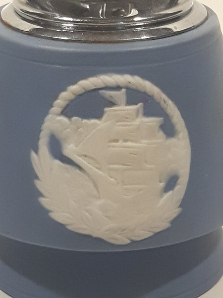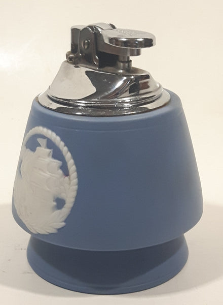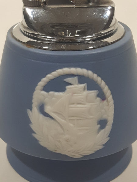 Vintage Wedgewood Jasperware Blue With White Cameo of Tall Sailing Ship 3 1/4" Tall Gas Table Lighter