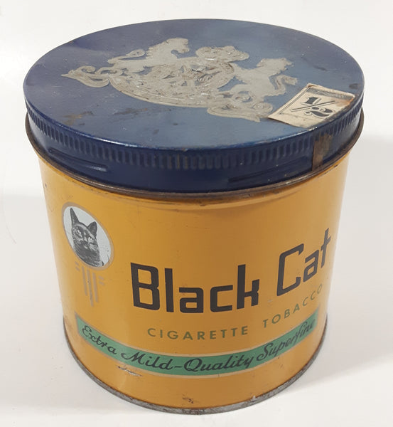 Rare Vintage Black Cat Cigarette Tobacco Extra Mild Quality Superfine Tin Metal Can