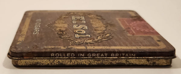 Vintage El Sol Cigars Hinged Tin Metal Container Made in Great Britain