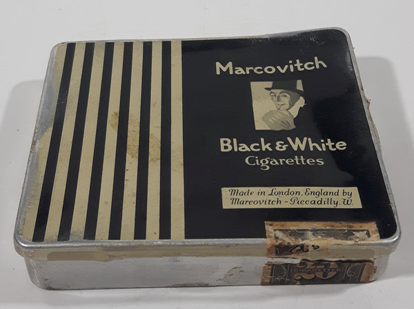 Vintage Marcovitch Black & White Cigarettes 20 Count Tin Metal Holder Case