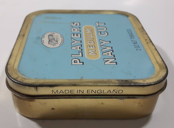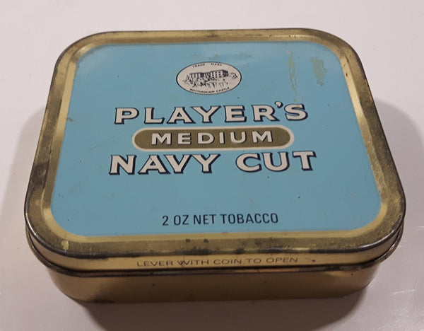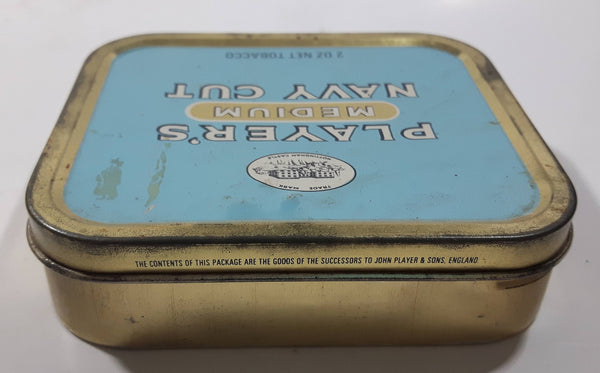 Vintage Player's Medium Navy Cut 2 oz Light Blue Tin Metal Tobacco Container