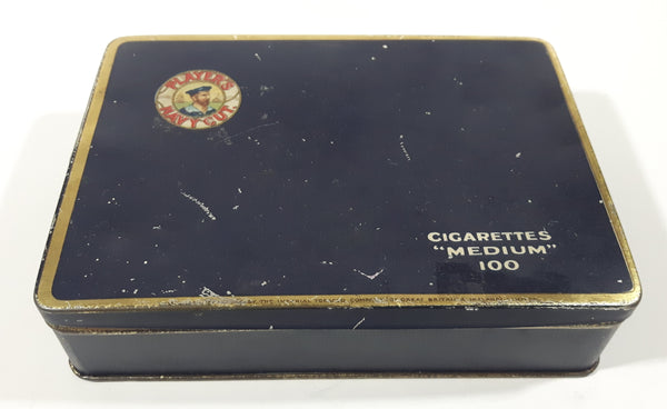 Vintage Player's Navy Cut Cigarettes Medium 100 Count Navy Blue Tin Metal Holder Case