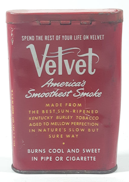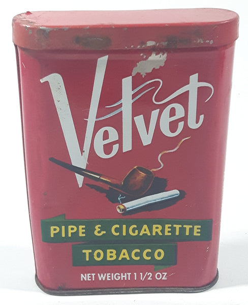 Vintage Velvet Pipe & Cigarette Tobacco 1 1/2 Oz. Red 4 1/2" Tall Hinged Metal Tin
