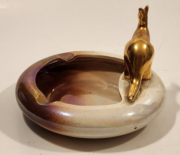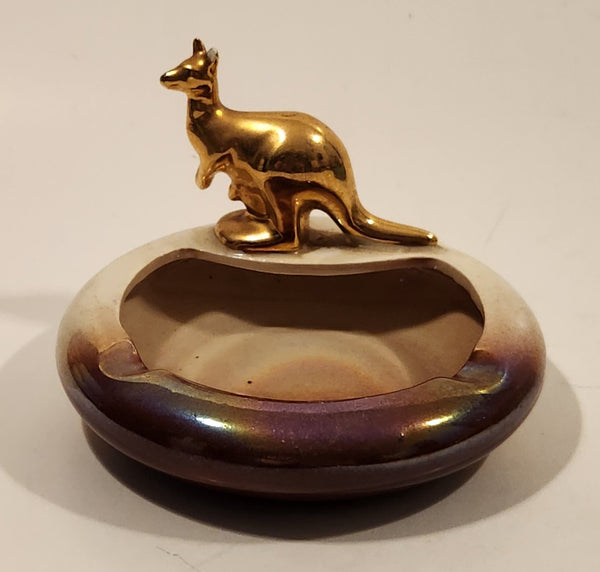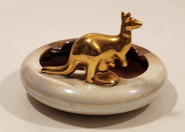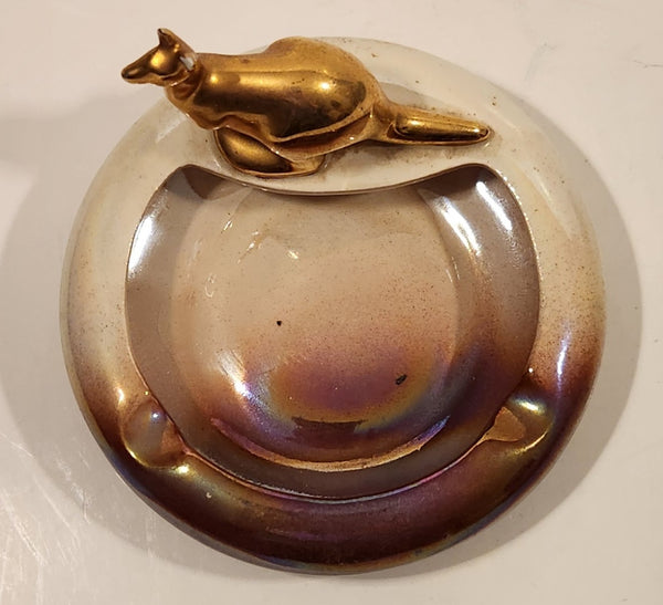 Vintage Wembley Quality Ware Gold Kangaroo Cream and Brown Lustreware Ceramic Ashtray Made in Australia