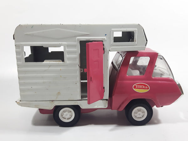 Vintage 1970s Tonka Camper Truck Pink and White Pressed Steel Toy Car Vehicle