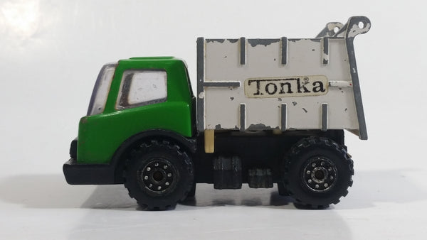 Vintage 1970s Tonka Garbage Truck Green and White Pressed Steel Toy Car Vehicle Made in Japan