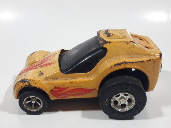 Vintage Tonka Dragster Yellow with Flames Pressed Steel Die Cast Toy Car Vehicle Made in Japan