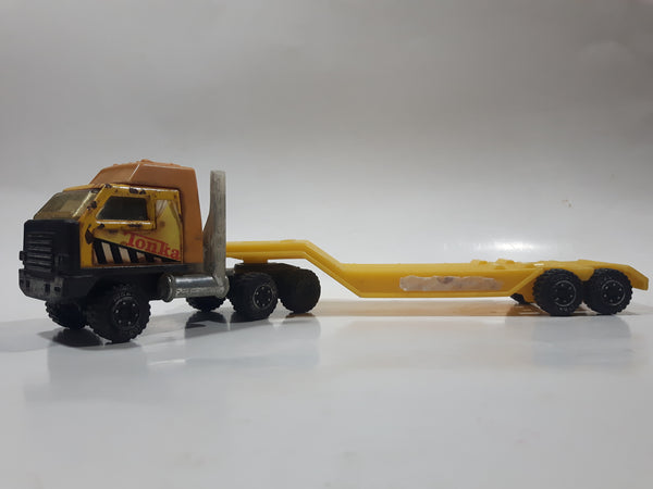 Vintage Tonka Semi Truck and Low Boy Flat Bed Trailer Yellow Pressed Steel and Plastic Toy Car Vehicle