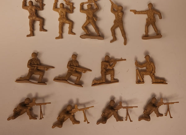 Set of 21 Tan Brown Army Military Soldiers 2" Tall Plastic Toy Figures