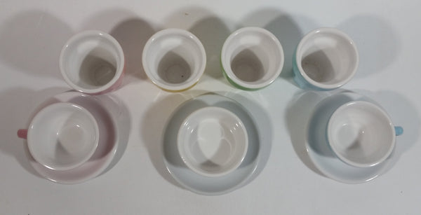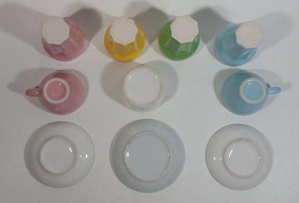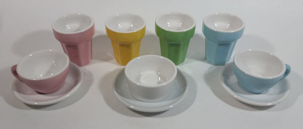 Cute Miniature Children's Kid's Size 6 Piece Ceramic Tea Set with Set of 4 Mini Ceramic Planters in Pink, Yellow, Green, and Blue