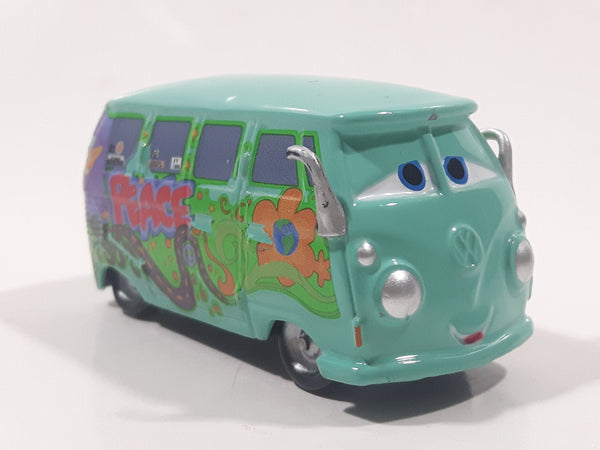 Disney Pixar Cars VW Bus Fillmore Volkswagen AG Groovy Love Flower Power Van Green Die Cast Toy Car Vehicle