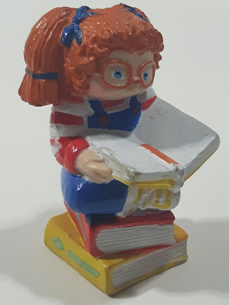 1984 OAA Panosh Place Cabbage Patch Kids Red Hair with Pigtails Sitting On Books Reading A Book 2 1/2" Tall PVC Toy Figure