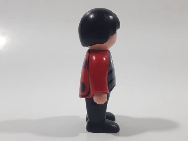 1990 Geobra Playmobil Boy with Black Hair in Red Shirt with Grey Vest and Black Pants 2 1/4" Tall Toy Figure