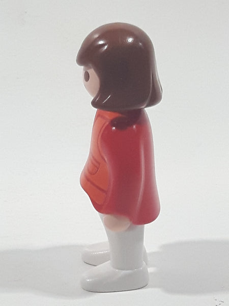 1990 Geobra Playmobil Girl in Red and Orange Top and White Pants 2 3/4" Tall Toy Figure