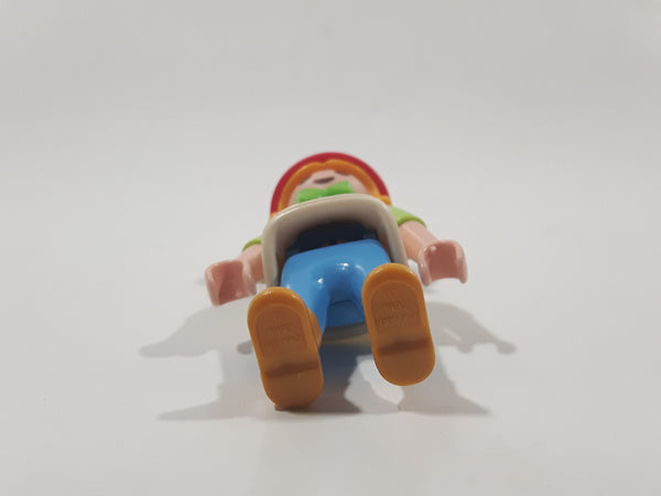 1992 Geobra Playmobil Girl with Blonde Hair Red Bonnet in White and Green Top and Blue Pants 2 1/8" Tall Toy Figure
