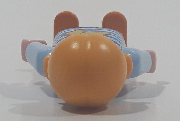 1992 Geobra Playmobil Small Blonde Child Brown Pants Blue Shirt with Horse 2 1/8" Tall Toy Figure