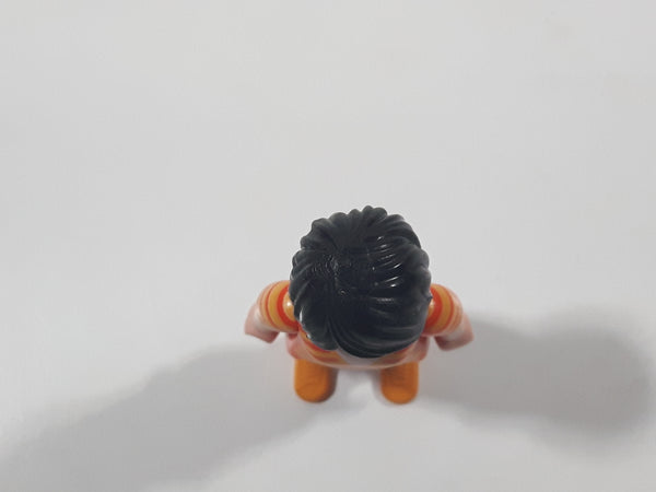 1992 Geobra Playmobil Woman with Black Hair Orange and Yellow Striped Sweater Over White Top and Blue Jean Pants 3" Tall Toy Figure