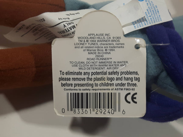 1994 Warner Bros. Looney Tunes Road Runner 16" Tall Stuffed Character Plush Toy