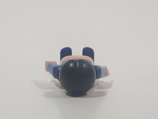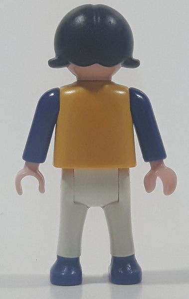 1995 Geobra Playmobil Small Black Haired Girl Child White Pants Blue Sweater with Yellow Red White Stripes 1/8" Tall Toy Figure