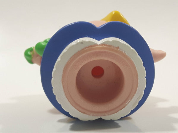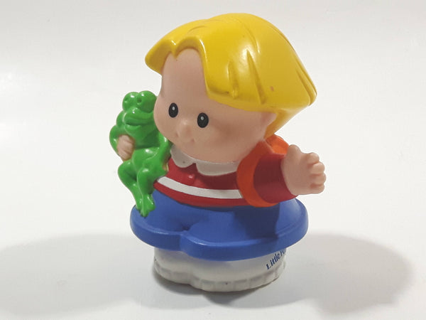2001 Little People Blonde Hair Red and white Shirt Blue Pants Holding Green Frog 2 1/4" Tall Toy Figure