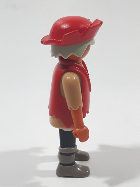 2002 Geobra Playmobil Grey Hair Pirate Red Hat Red Vest Brown Shirts Black Pants 3" Tall Toy Figure