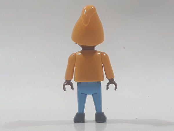 2005 Geobra Playmobil Santa's Workshop Advent Calendar Elf in Yellow with Blue Overalls 2 3/8" Tall Toy Figure
