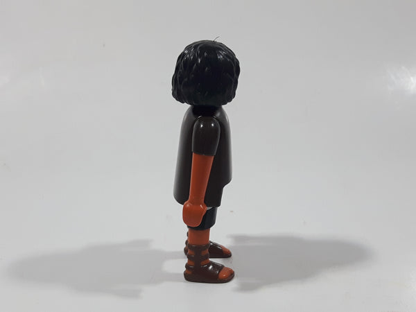 2008 Geobra Playmobil Black Haired Boy Black Bottoms Dark Brown Shirt Brown Laced Sandals 2 7/8" Tall Toy Figure