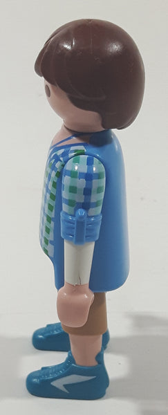 2012 Geobra Playmobil Man in Blue and Green Top with Tan Pants 2 3/4" Tall Toy Figure