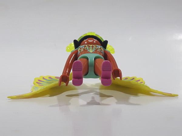 2014 Geobra PlayMobil Everdreamerz Dancing Queen Lime Green Crown Teal Swim Suit with Fluorescent Yellow Wings 3 1/4" Tall Toy Figure