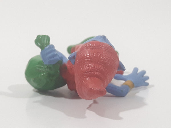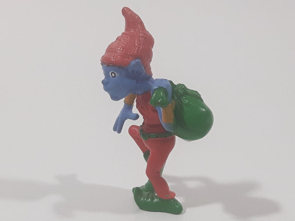 Blue Skinned Elf Wearing Red and Green Clothes Sneakily Carrying Bag While Walking On Tip Toes 2 1/2" Tall Toy Figure