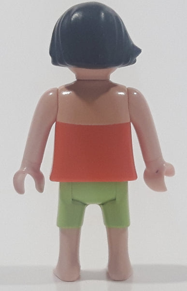Geobra Playmobil Small Black Haired Girl Child Green Shorts Orange Blouse Tank Top 2 1/8" Tall Toy Figure