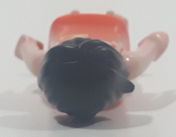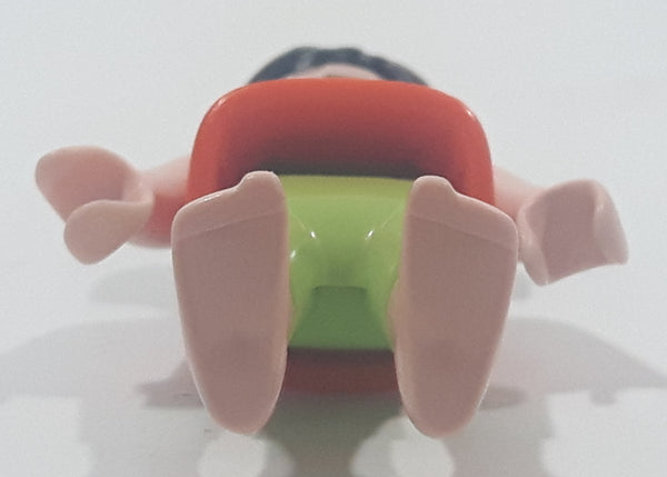 Geobra Playmobil Small Black Haired Girl Child Green Shorts Orange Blouse Tank Top 2 1/8" Tall Toy Figure