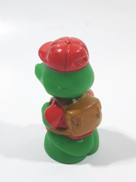 Green Crocodile Character with Red Hat and Brown Backpack 2 3/8" Tall Toy Figure