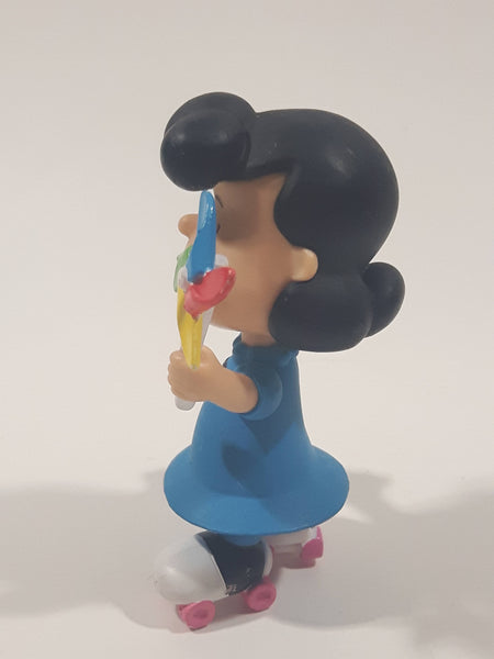 JP Just Play PNTS Peanuts Lucy Wearing Roller Skates Holding Rainbow Wind Pinwheel 3" Tall Vinyl Toy Figure