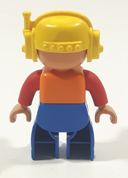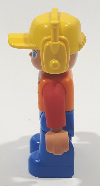 Lego Duplo Construction Worker Character Orange Vest Yellow Helmet 2 1/2" Tall Plastic Toy Figure