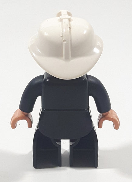 Lego Duplo Fire Chief Character Black Vest White Helmet 2 1/2" Tall Plastic Toy Figure