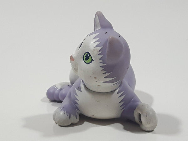 Rare Very Hard To Find 1991 Hasbro Inc Kitty Surprise Funtime Babies Light Purple and White Cat 3 1/2" Long Plastic Toy Figure with Magnetic Paw