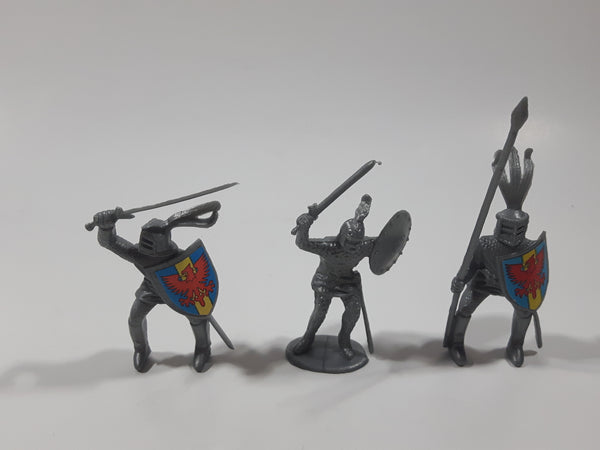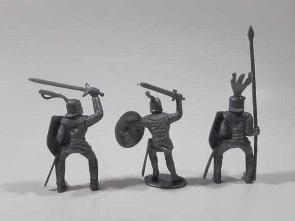 Set of 3 Grey Knights In Different Poses 2 1/4" Tall Plastic Toy Figures