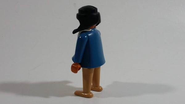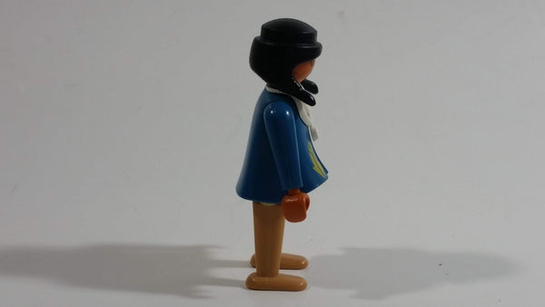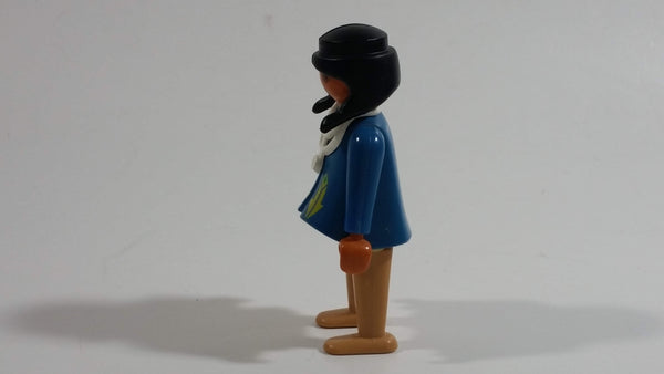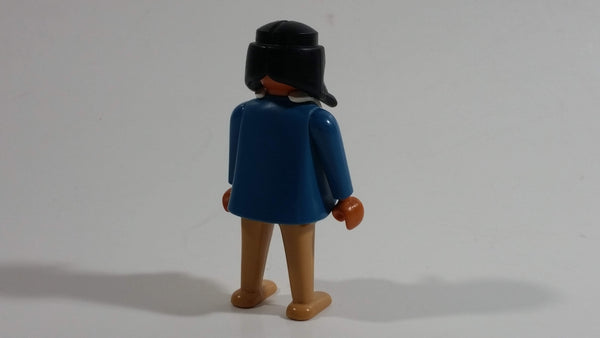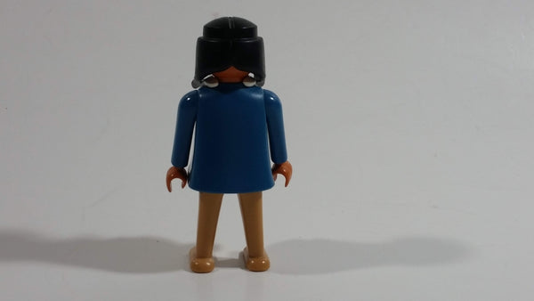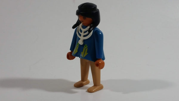 Vintage 1974 Geobra Playmobil Black Haired Native American Indian Man Brown Bottoms Blue Top with White Necklace 3" Tall Toy Figure