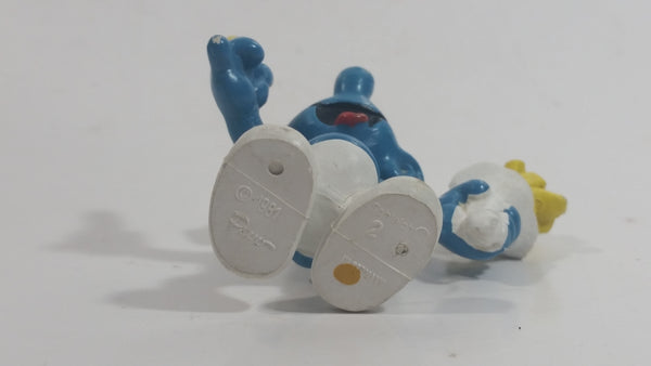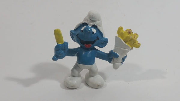 Vintage 1980 Peyo Smurf Character Holding and Eating French Fries PVC Toy Figure