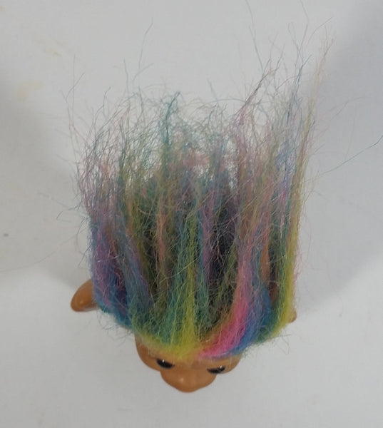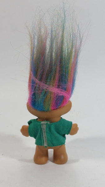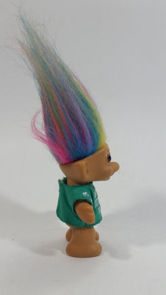 Vintage 1980s Russ Lucky Lottery Troll with Rainbow Hair and Green Shirt Collectible Toy Figure