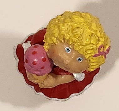 Vintage 1984 OAA Cabbage Patch Kids Girl Holding Ice Cream Cone in Red Dress 2 1/4" PVC Toy Figure
