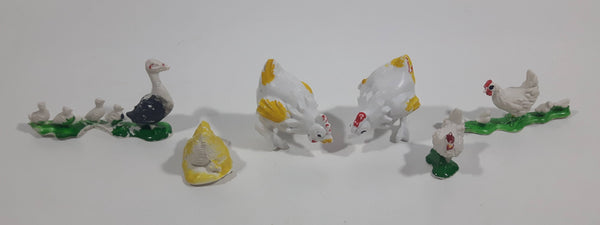 Vintage Plastic Farm Chickens, Hens, Baby Chicks, Goose, Baby Geese Toys Made in Hong Kong Lot of 6