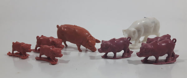 Vintage Plastic Farm Livestock 7 Pink 1 White Pig Toys Made in Hong Kong Lot of 8