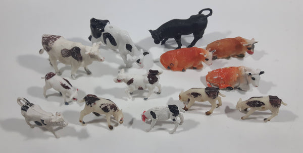 Vintage Plastic Farm Livestock Cattle Cows, Dairy Cows, Bulls, Calves Toys Made in Hong Kong Lot of 13