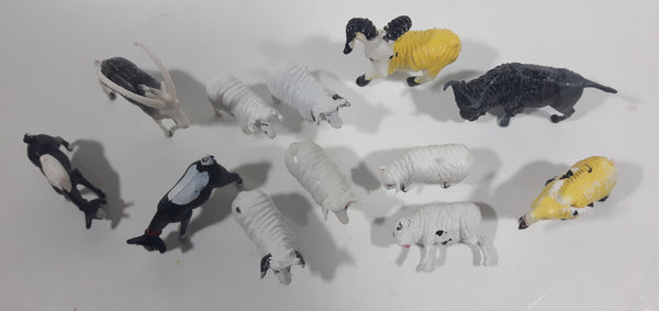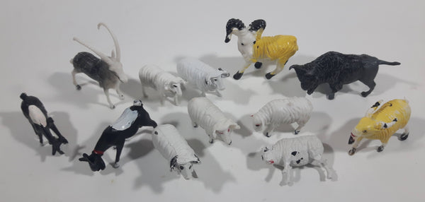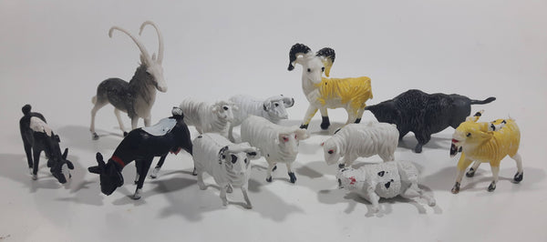 Vintage Plastic Farm Livestock Ram, Goats, Sheep, Bison Toys Made in Hong Kong Lot of 12